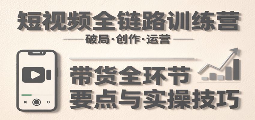 本课程是短视频从0到1的实战训练营,系统覆盖商业定位、内容创作到变现闭环的全链路技能。课程从破局策略和商业定位切入,重点突破人设打造(主页五件套/关注诱导)、算法运用(流量池机制/标签系统)、内容生产(15种结构模板/情绪化文案)三大核心模块,结合拍摄布光(高级感场景搭建)、表现力训练(声音手势/镜头克服)、剪辑技法(声画情绪强化)等硬技能,最终实现自然流量撬动与带货转化(选品策略/直播脚本),形成从创意进阶到数据优化的完整商业闭环。