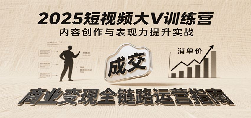 本课程是2025年最新短视频百万大V培养体系,聚焦三大核心模块:内容创作体系(爆款选题/四大脚本类型/文案写作)、表现力提升体系(拍摄呈现/拆片技巧/场暴突破)和商业变现体系(4P产品法则/DOU+投放/四大变现方式)。课程深度解析短视频底层逻辑,系统教学素材库搭建、八大爆款元素运用及高信任脚本创作(聊观点/晒过程/教知识/讲故事),配套剪辑基础、平台规则避坑等实战技能,形成从账号定位到高客单成交的完整闭环。