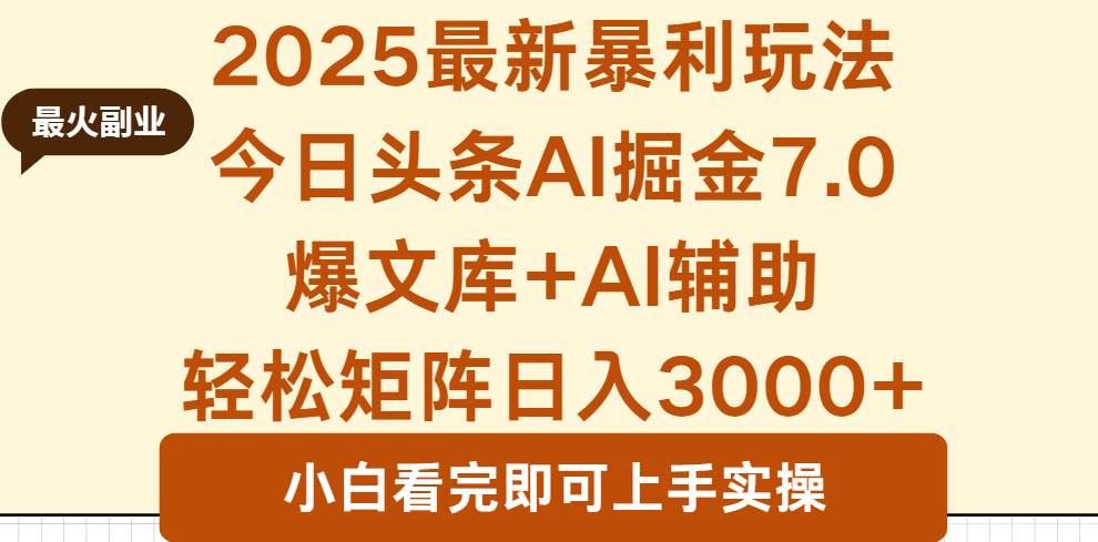(16113期)2025年今日头条最新暴利玩法7.0,一键生成爆款,轻松实现矩阵日入3000+