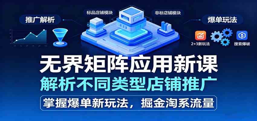 本课程为电商无界矩阵实战课,系统拆解不同类型店铺的推广策略。课程分为4大模块:全店动销型(全站推广利弊解析)、多小爆款群(关键词布局/矩阵应用)、单爆款组合(标品与非标店铺差异化运营)、多爆款联动(标品与非标店铺实战)。通过10节核心教学(含无界2+3新玩法),帮助学员掌握从流量获取到爆单转化的全链路技术,实现店铺GMV提升200%的实战效果。