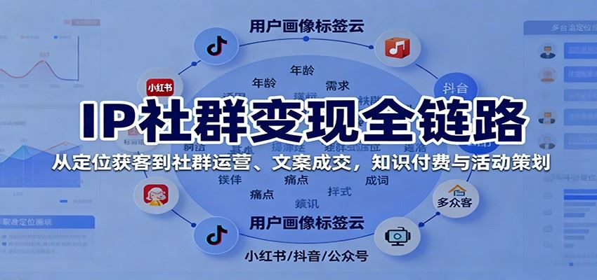 本课程聚焦私域变现与IP打造,涵盖社群运营、产品矩阵、精准引流、文案成交等20+核心模块。通过高价值定位、裂变活动设计、私聊成交法等实战技巧,帮助用户构建个人商业闭环。学员案例显示单月变现10万+,优秀学员年收入突破百万。