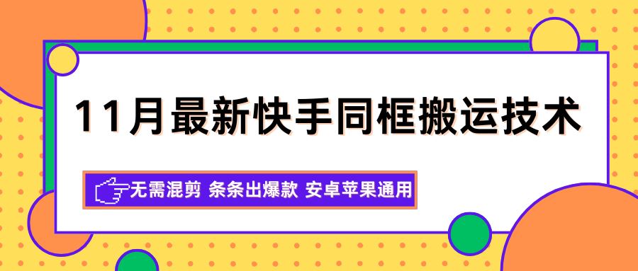 11月正是流量爆发的好时机,别再错过这个风口!赶紧试试这款快手同框搬运技术,让你的账号轻松出圈,爆款不断!