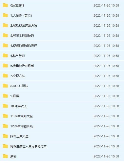(4379期)抖音运营入门到精通资料工具包:你想要的这里都有,超完整!云创智库1月21日 06:31发布关注1536 抖音运营入门到精通工具包文件目录 部分截图 (4379期)抖音运营入门到精通资料工具包:你想要的这里都有,超完整!此内容为付费资源--加入网盘会员查看附件🪙糖果3.98超级会员免费终身会员免费立即购买请登录后再操作!可保存附件记录付费资源© 版权声明 免责声明 ◎本站所发布的全部内容源于互联网(包括源代码、软件、学习资料等)本站提供的一切软件、教程和内容信息仅限用于学习和研究目的;不得将上述内容用于商业或者非法用途,否则一切后果请用户自负。宝藏云创对所提供下载的软件和程序代码不拥有任何权利,其版权归该软件和程序代码的合法拥有者所有,网页信息来自网络收集整理,版权争议与本站无关。如果您喜欢该程序和内容,请支持正版,购买注册,得到更好的正版服务。我们非常重视版权问题,如本站不慎侵犯您的版权请联系我们,我们将及时处理,并撤下相关内容!敬请谅解! 侵删请致信E-mail:2754908705@qq.com ◎云创项目库作为信息共享平台我们无法对信息的真实性及准确性做出判断,风险请各位自行甄别。我们不承担任何财产损失和法律责任,若您不同意该提示,请关闭网页且不要在本站拓展任何合作,否则在使用过程中造成的任何损失由您个人承担。本站发布的所有资源不代表本站赞同其观点和对其完整性、真实性、可用性负责 如遇到加密压缩包,请使用WINRAR解压,如遇到无法解压的请联系管理员! THE END宝藏云创# 实战VIP项目# 短视频运营 收藏