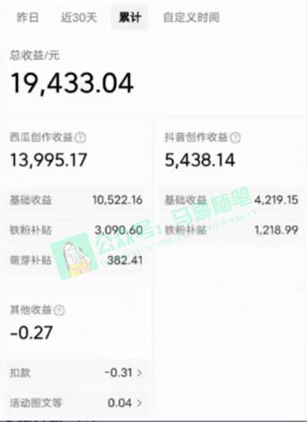中视频计划一直都是一个赚钱又稳定的地方,只要你能吸引大量观众,就能获得丰厚的收益;我的这套玩法恰好同时适合今日头条和视频号,只需要制作一条原创,一键同步发布在多个平台上,同时赚取多份收益,且可以实现小号授权多账号矩阵,每天1000+的收益是保守说法,看看我的收益就知道了。