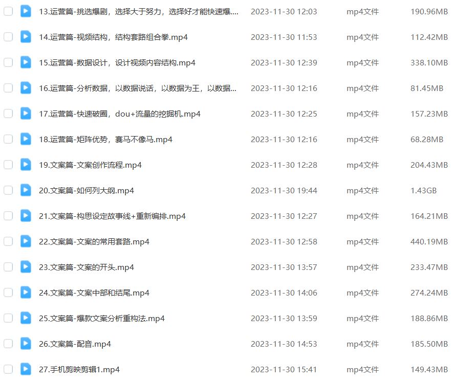 全程实操,总共35节课,从运营,文案到剪辑发布手把手教程录制