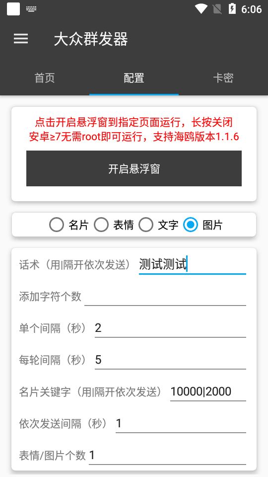 (3275期)【引流必备】蝙蝠同款平台海鸥 全自动群发器 支持发送图片文字【永久脚本】云创智库1月22日 06:06发布关注2644 平台:海鸥(蝙蝠同款平台,可以去应用商店或腾讯-应用宝内搜索下载) 脚本功能:支持自动群发图片、文字消息,全自动群发 设备需求:电脑模拟器或者安卓手机(安卓7.1以上版本,不支持鸿蒙系统) 本软件需要另外购买卡密,介意的请移步到其它不需要卡密的项目 (3275期)【引流必备】蝙蝠同款平台海鸥 全自动群发器 支持发送图片文字【永久脚本】此内容为付费资源--加入网盘会员查看附件🪙糖果3.98超级会员免费终身会员免费立即购买请登录后再操作!可保存附件记录付费资源© 版权声明 免责声明 ◎本站所发布的全部内容源于互联网(包括源代码、软件、学习资料等)本站提供的一切软件、教程和内容信息仅限用于学习和研究目的;不得将上述内容用于商业或者非法用途,否则一切后果请用户自负。宝藏云创对所提供下载的软件和程序代码不拥有任何权利,其版权归该软件和程序代码的合法拥有者所有,网页信息来自网络收集整理,版权争议与本站无关。如果您喜欢该程序和内容,请支持正版,购买注册,得到更好的正版服务。我们非常重视版权问题,如本站不慎侵犯您的版权请联系我们,我们将及时处理,并撤下相关内容!敬请谅解! 侵删请致信E-mail:2754908705@qq.com ◎云创项目库作为信息共享平台我们无法对信息的真实性及准确性做出判断,风险请各位自行甄别。我们不承担任何财产损失和法律责任,若您不同意该提示,请关闭网页且不要在本站拓展任何合作,否则在使用过程中造成的任何损失由您个人承担。本站发布的所有资源不代表本站赞同其观点和对其完整性、真实性、可用性负责 如遇到加密压缩包,请使用WINRAR解压,如遇到无法解压的请联系管理员! THE END宝藏云创# 实战VIP项目# 引流-涨粉-软件 收藏