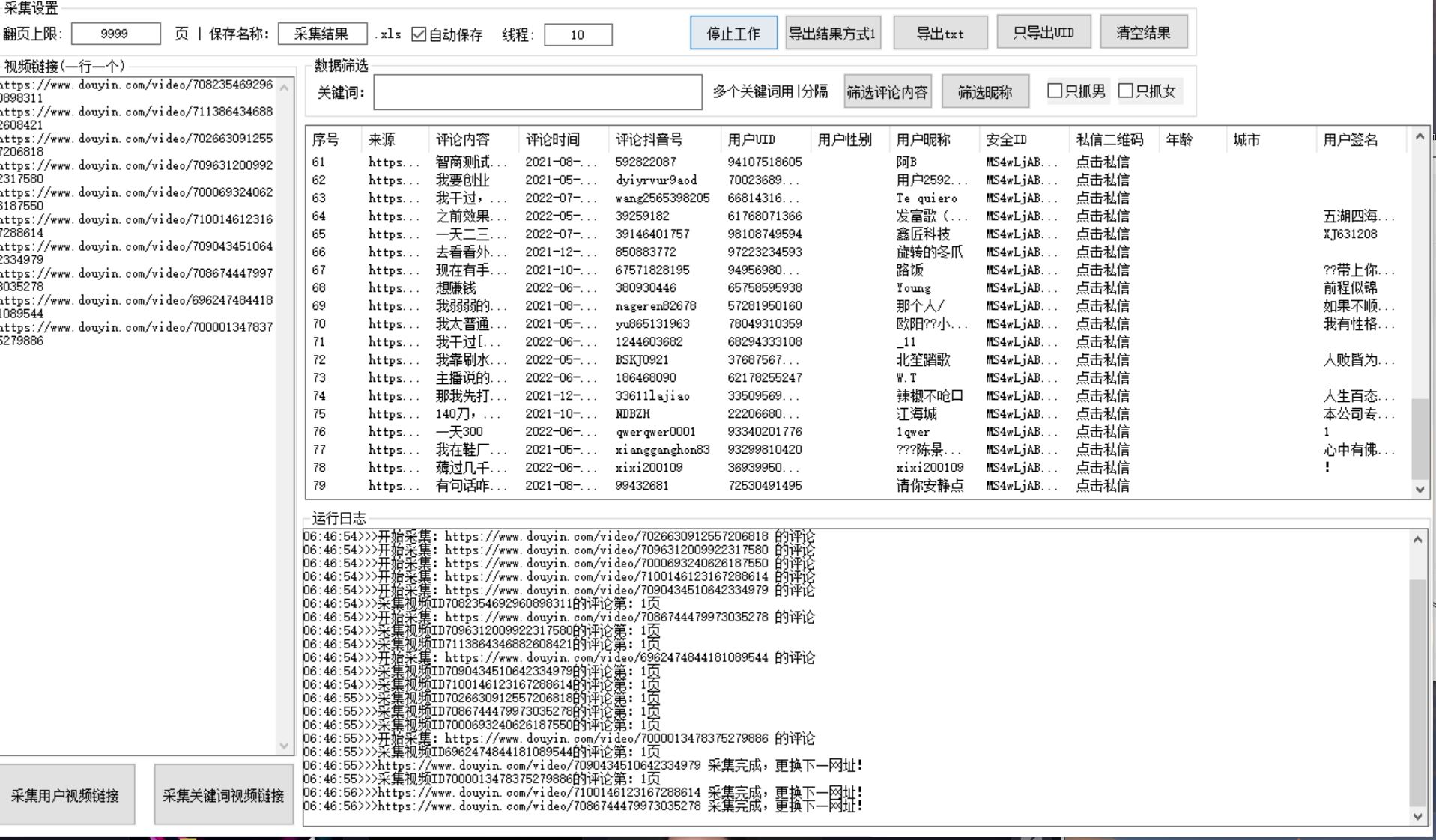 把视频链接放在软件中采集评论和回复抖音号,软件可以导出、然后筛选相关用户,进行关注或私信等方式营销!