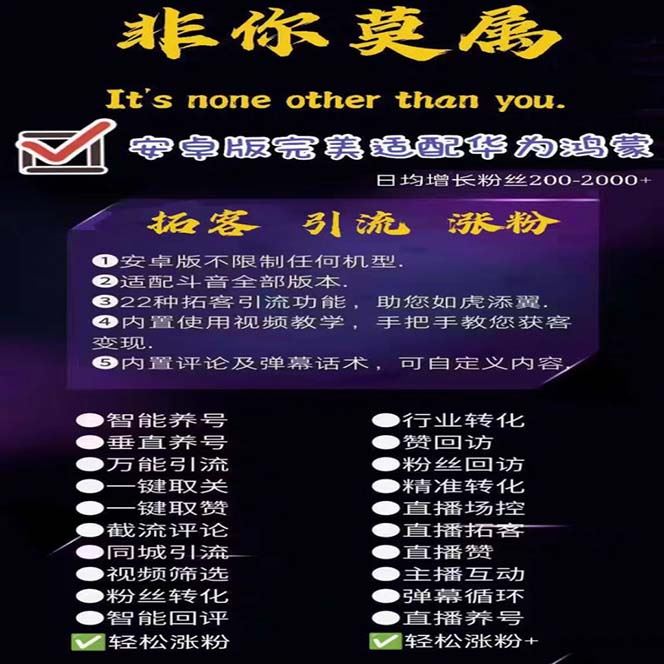 (5812期)引流必备-外面收费388非你莫属斗音智能拓客引流养号截流爆粉场控营销神器云创智库1月22日 06:20发布关注2289 设备需求:安卓7以上大部分手机都支持 完美适配华为机型鸿蒙系统 【引流必备】外面收费388的非你莫属斗音智能拓客引流养号截流爆粉场控营销神器【永久脚本+详细教程】 本脚本卡密需要另外购买,几块钱一个,介意请移步到不需要卡密的项目 (5812期)引流必备-外面收费388非你莫属斗音智能拓客引流养号截流爆粉场控营销神器此内容为付费资源--加入网盘会员查看附件🪙糖果3.98超级会员免费终身会员免费立即购买请登录后再操作!可保存附件记录付费资源© 版权声明 免责声明 ◎本站所发布的全部内容源于互联网(包括源代码、软件、学习资料等)本站提供的一切软件、教程和内容信息仅限用于学习和研究目的;不得将上述内容用于商业或者非法用途,否则一切后果请用户自负。宝藏云创对所提供下载的软件和程序代码不拥有任何权利,其版权归该软件和程序代码的合法拥有者所有,网页信息来自网络收集整理,版权争议与本站无关。如果您喜欢该程序和内容,请支持正版,购买注册,得到更好的正版服务。我们非常重视版权问题,如本站不慎侵犯您的版权请联系我们,我们将及时处理,并撤下相关内容!敬请谅解! 侵删请致信E-mail:2754908705@qq.com ◎云创项目库作为信息共享平台我们无法对信息的真实性及准确性做出判断,风险请各位自行甄别。我们不承担任何财产损失和法律责任,若您不同意该提示,请关闭网页且不要在本站拓展任何合作,否则在使用过程中造成的任何损失由您个人承担。本站发布的所有资源不代表本站赞同其观点和对其完整性、真实性、可用性负责 如遇到加密压缩包,请使用WINRAR解压,如遇到无法解压的请联系管理员! THE END宝藏云创# 实战VIP项目# 引流-涨粉-软件 收藏