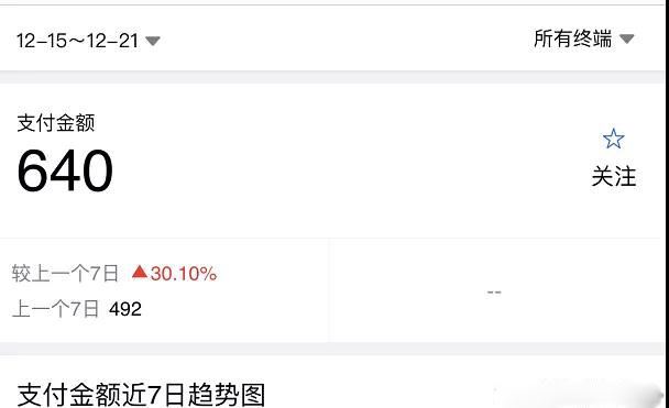 这里我说下:这是个副业项目,没法和主业相比。我们自己做的话,一个店铺可以产出5000左右的纯利润,我给大家看下数据图,这是7天内的最新数据图,因最近双12的影响,流量不行,但数据还算满意: