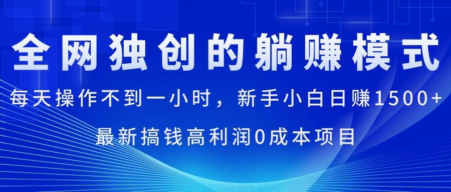 每天操作不到一小时,新手小白日赚1500+,最新搞钱高利润0成本项目