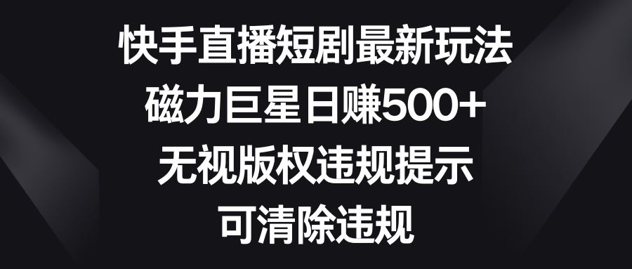 通过快手直播伴侣24小时直播热门短剧,挂载快手官方的磁力巨星任务获得一个收入,操作流程比较简单,提前给需要播放的电视剧下载下来,通过VLC播放器24小时循环播放就好,在直播伴侣开播前,提前给磁力巨星任务开起来。
