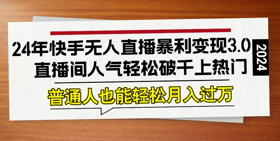 (12749期)24年快手无人直播暴利变现3.0,直播间人气轻松破千上热门,普通人也能…
