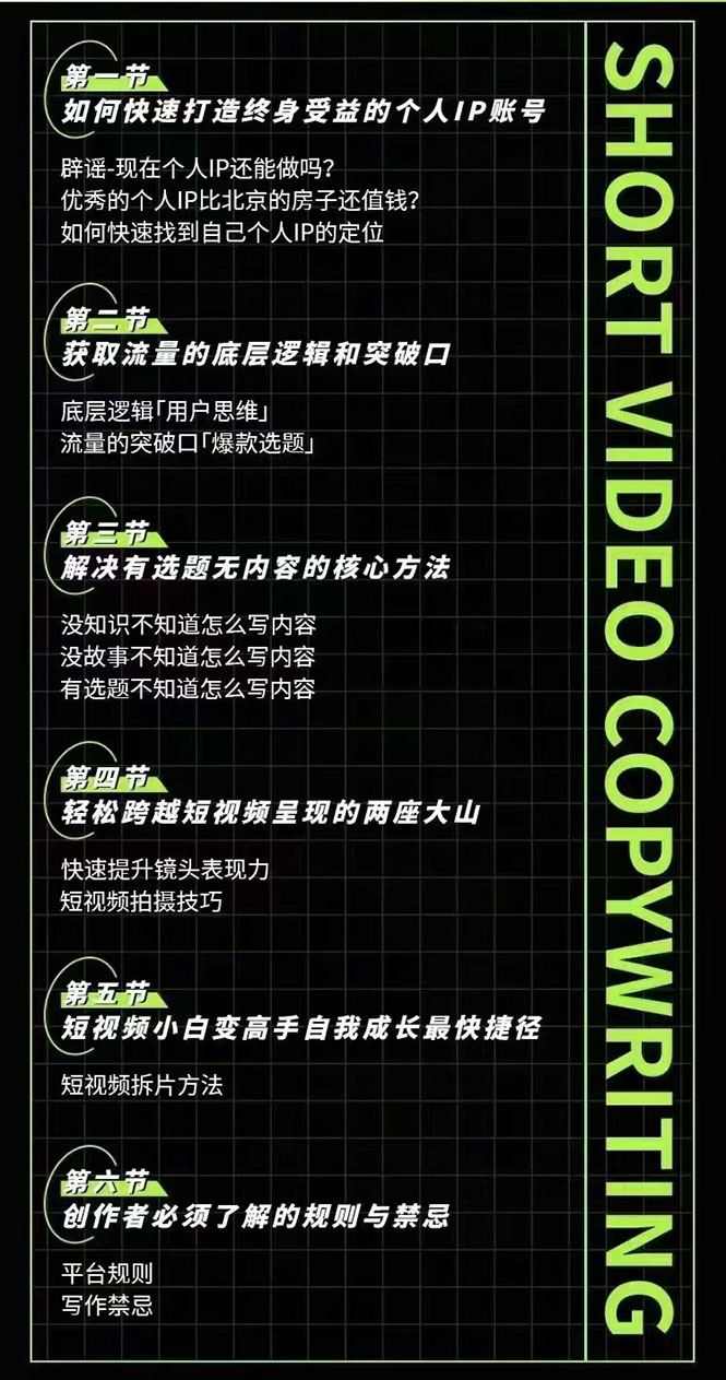 (2679期)说话就能火的短视频文案课:让不会写文案的人写出可传播的完整文案(19期)云创智库1月26日 21:59发布关注1969 让不会写文案的人,写出一篇可传播的完整文案 让会写文案的人,提高产出量,写出更优质更易于传播的文案 (2679期)说话就能火的短视频文案课:让不会写文案的人写出可传播的完整文案(19期)此内容为付费资源--加入网盘会员查看附件🪙糖果3.98超级会员免费终身会员免费立即购买请登录后再操作!可保存附件记录付费资源© 版权声明 免责声明 ◎本站所发布的全部内容源于互联网(包括源代码、软件、学习资料等)本站提供的一切软件、教程和内容信息仅限用于学习和研究目的;不得将上述内容用于商业或者非法用途,否则一切后果请用户自负。宝藏云创对所提供下载的软件和程序代码不拥有任何权利,其版权归该软件和程序代码的合法拥有者所有,网页信息来自网络收集整理,版权争议与本站无关。如果您喜欢该程序和内容,请支持正版,购买注册,得到更好的正版服务。我们非常重视版权问题,如本站不慎侵犯您的版权请联系我们,我们将及时处理,并撤下相关内容!敬请谅解! 侵删请致信E-mail:2754908705@qq.com ◎云创项目库作为信息共享平台我们无法对信息的真实性及准确性做出判断,风险请各位自行甄别。我们不承担任何财产损失和法律责任,若您不同意该提示,请关闭网页且不要在本站拓展任何合作,否则在使用过程中造成的任何损失由您个人承担。本站发布的所有资源不代表本站赞同其观点和对其完整性、真实性、可用性负责 如遇到加密压缩包,请使用WINRAR解压,如遇到无法解压的请联系管理员! THE END宝藏云创# 实战VIP项目# 文案写作 收藏