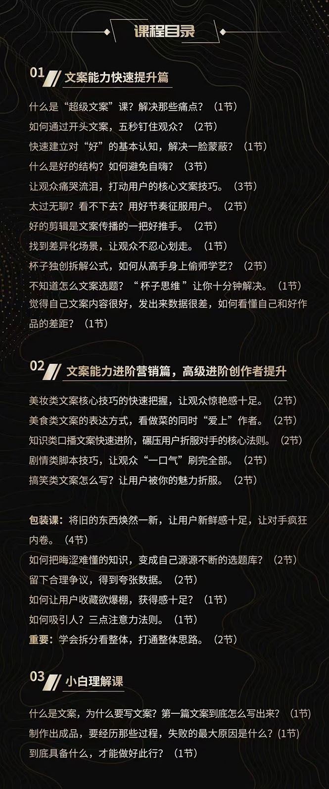 (2579期)超级文案课,百万级文案写作培训:全面系统学习(51节视频课)云创智库1月26日 21:59发布关注1170 (2579期)超级文案课,百万级文案写作培训:全面系统学习(51节视频课)此内容为付费资源--加入网盘会员查看附件🪙糖果3.98超级会员免费终身会员免费立即购买请登录后再操作!可保存附件记录付费资源© 版权声明 免责声明 ◎本站所发布的全部内容源于互联网(包括源代码、软件、学习资料等)本站提供的一切软件、教程和内容信息仅限用于学习和研究目的;不得将上述内容用于商业或者非法用途,否则一切后果请用户自负。宝藏云创对所提供下载的软件和程序代码不拥有任何权利,其版权归该软件和程序代码的合法拥有者所有,网页信息来自网络收集整理,版权争议与本站无关。如果您喜欢该程序和内容,请支持正版,购买注册,得到更好的正版服务。我们非常重视版权问题,如本站不慎侵犯您的版权请联系我们,我们将及时处理,并撤下相关内容!敬请谅解! 侵删请致信E-mail:2754908705@qq.com ◎云创项目库作为信息共享平台我们无法对信息的真实性及准确性做出判断,风险请各位自行甄别。我们不承担任何财产损失和法律责任,若您不同意该提示,请关闭网页且不要在本站拓展任何合作,否则在使用过程中造成的任何损失由您个人承担。本站发布的所有资源不代表本站赞同其观点和对其完整性、真实性、可用性负责 如遇到加密压缩包,请使用WINRAR解压,如遇到无法解压的请联系管理员! THE END宝藏云创# 实战VIP项目# 文案写作 收藏