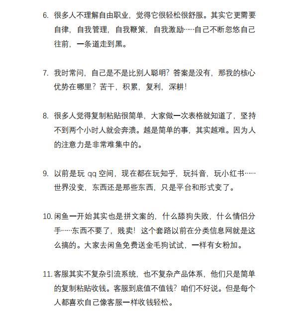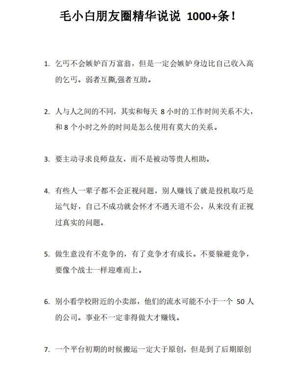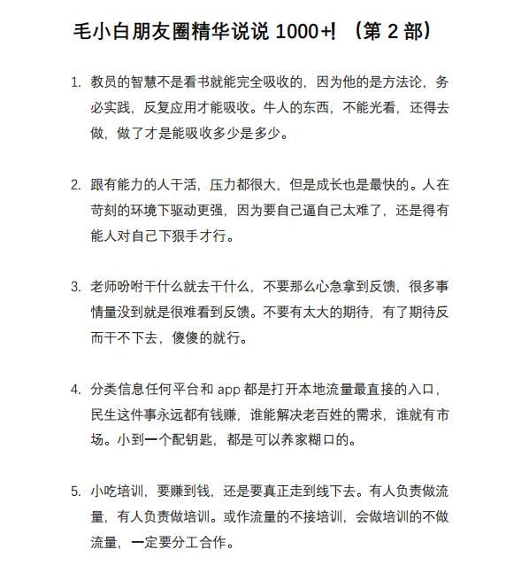 (2803期)毛小白内容合集《朋友圈说说精华1000+》好的文字才值钱(第1部+2部)云创智库1月26日 21:59发布关注2477 毛小白内容合集推荐:毛小白盆友圈精华说说1000条1+2 个人品牌ip打造交流群精华 个人品牌笔记165则 第一部部分截图 第二部部分截图 (2803期)毛小白内容合集《朋友圈说说精华1000+》好的文字才值钱(第1部+2部)此内容为付费资源--加入网盘会员查看附件🪙糖果3.98超级会员免费终身会员免费立即购买请登录后再操作!可保存附件记录付费资源© 版权声明 免责声明 ◎本站所发布的全部内容源于互联网(包括源代码、软件、学习资料等)本站提供的一切软件、教程和内容信息仅限用于学习和研究目的;不得将上述内容用于商业或者非法用途,否则一切后果请用户自负。宝藏云创对所提供下载的软件和程序代码不拥有任何权利,其版权归该软件和程序代码的合法拥有者所有,网页信息来自网络收集整理,版权争议与本站无关。如果您喜欢该程序和内容,请支持正版,购买注册,得到更好的正版服务。我们非常重视版权问题,如本站不慎侵犯您的版权请联系我们,我们将及时处理,并撤下相关内容!敬请谅解! 侵删请致信E-mail:2754908705@qq.com ◎云创项目库作为信息共享平台我们无法对信息的真实性及准确性做出判断,风险请各位自行甄别。我们不承担任何财产损失和法律责任,若您不同意该提示,请关闭网页且不要在本站拓展任何合作,否则在使用过程中造成的任何损失由您个人承担。本站发布的所有资源不代表本站赞同其观点和对其完整性、真实性、可用性负责 如遇到加密压缩包,请使用WINRAR解压,如遇到无法解压的请联系管理员! THE END宝藏云创# 实战VIP项目# 文案写作 收藏