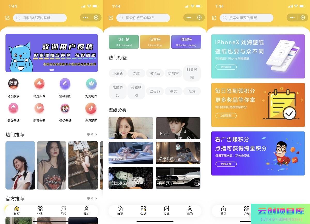 本壁纸表情包头像小程序采用(dcloud云开发)所以无需服务器与域名