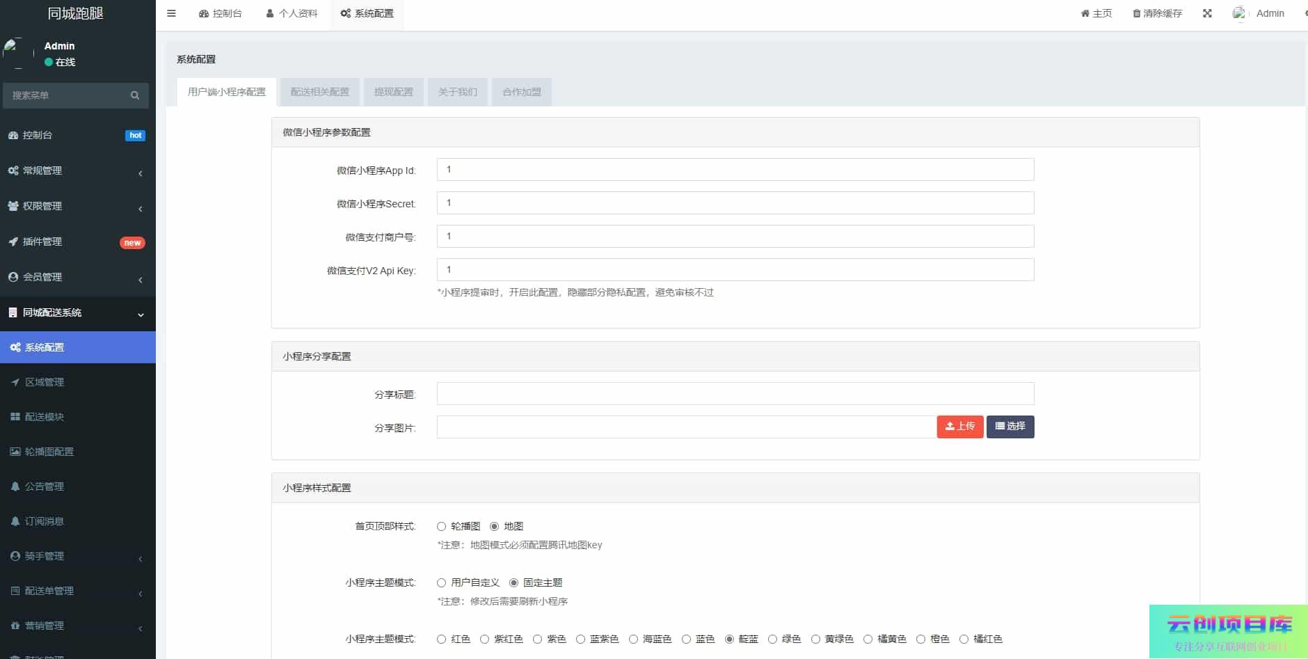 基于Fastadmin+ThinkPHP和Uniapp开发的优创同城跑腿系统,支持帮取、帮送模式,包含用户端、骑手端、运营后台。