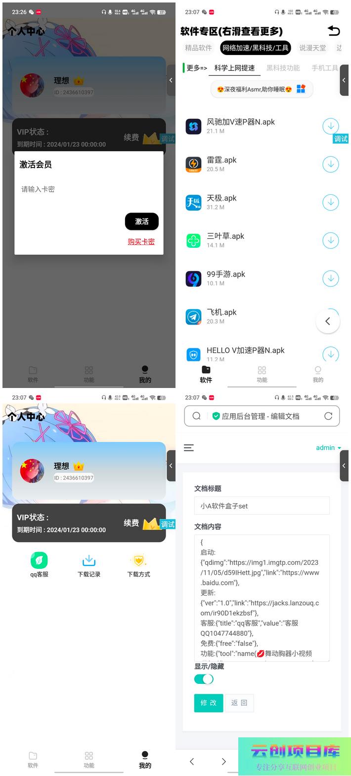 该软件库包含会员系统、用户系统和卡密系统等功能。