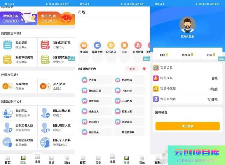 商铺:这是一个包含账号、实名认证、市场和游戏等内容的综合体。