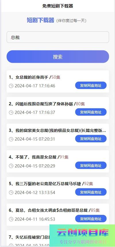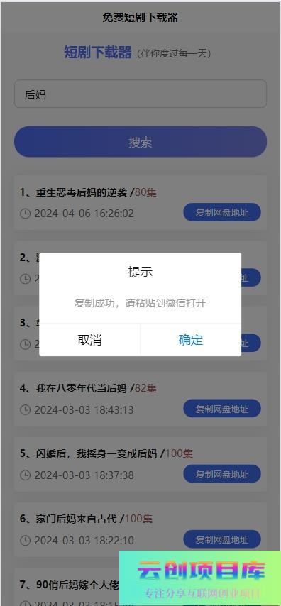 免费短剧H5下载源码(含接口API),海量短剧免费下载云创智库4月5日 22:29发布关注2317 免费短剧H5下载页面,海量短剧免费下载 源码直接宝塔服务器即可使用,无需其他配置!! 开发语言:uniapp 免费短剧H5下载源码(含接口API),海量短剧免费下载此内容为免费资源,请登录后查看🪙糖果0 登录查看免费资源© 版权声明 免责声明 ◎本站所发布的全部内容源于互联网(包括源代码、软件、学习资料等)本站提供的一切软件、教程和内容信息仅限用于学习和研究目的;不得将上述内容用于商业或者非法用途,否则一切后果请用户自负。宝藏云创对所提供下载的软件和程序代码不拥有任何权利,其版权归该软件和程序代码的合法拥有者所有,网页信息来自网络收集整理,版权争议与本站无关。如果您喜欢该程序和内容,请支持正版,购买注册,得到更好的正版服务。我们非常重视版权问题,如本站不慎侵犯您的版权请联系我们,我们将及时处理,并撤下相关内容!敬请谅解! 侵删请致信E-mail:2754908705@qq.com ◎云创项目库作为信息共享平台我们无法对信息的真实性及准确性做出判断,风险请各位自行甄别。我们不承担任何财产损失和法律责任,若您不同意该提示,请关闭网页且不要在本站拓展任何合作,否则在使用过程中造成的任何损失由您个人承担。本站发布的所有资源不代表本站赞同其观点和对其完整性、真实性、可用性负责 如遇到加密压缩包,请使用WINRAR解压,如遇到无法解压的请联系管理员! THE END网页/APP# IApp源码 收藏