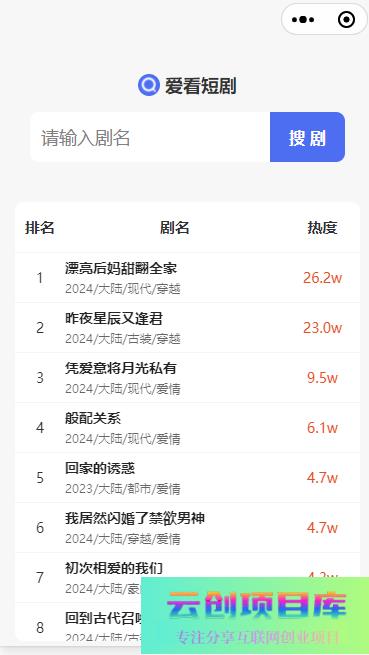 基于xxx + uniapp开发的短剧搜索平台, 已兼容APP、H5、微信小程序