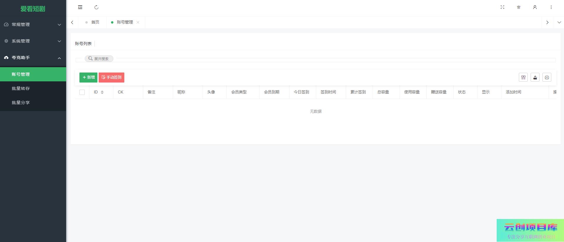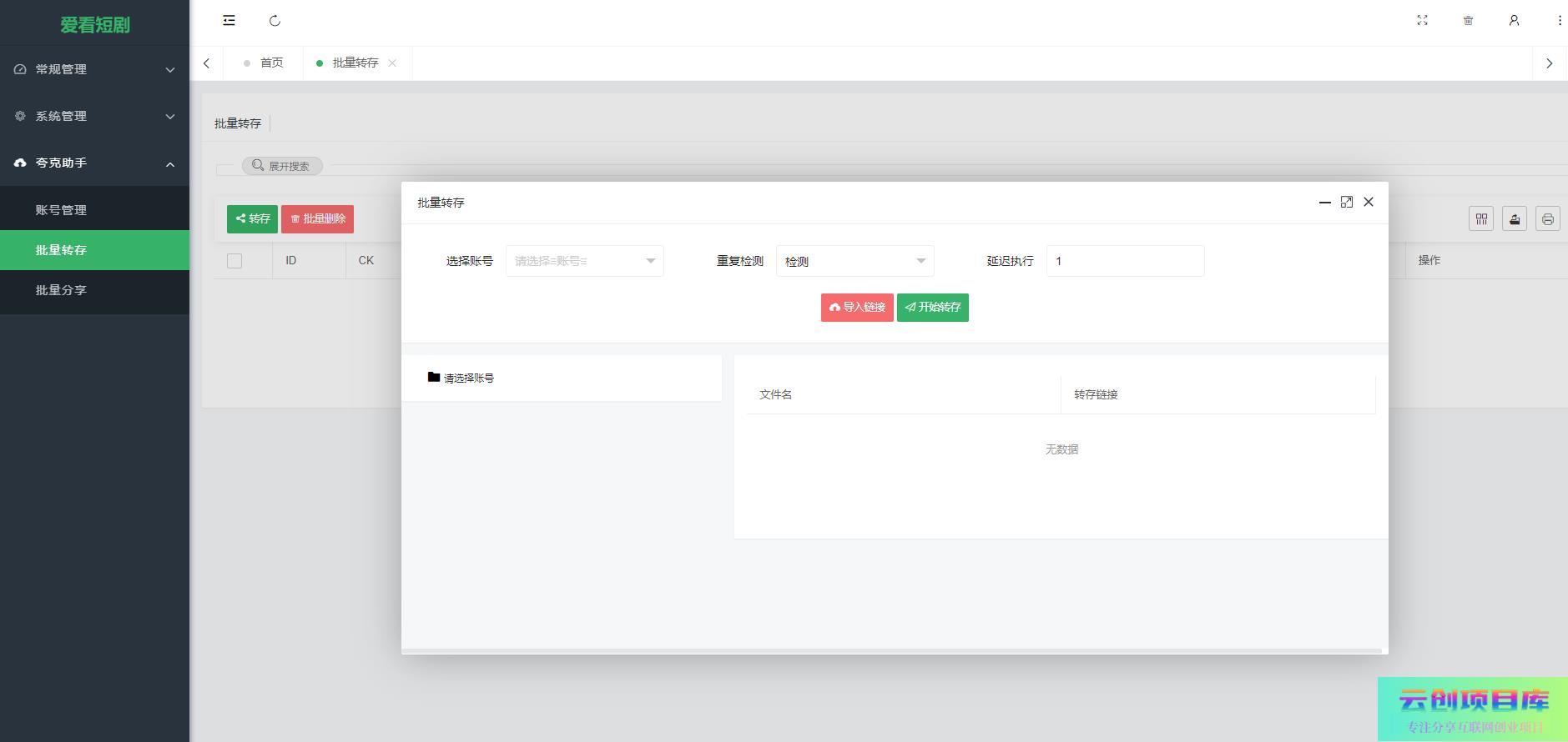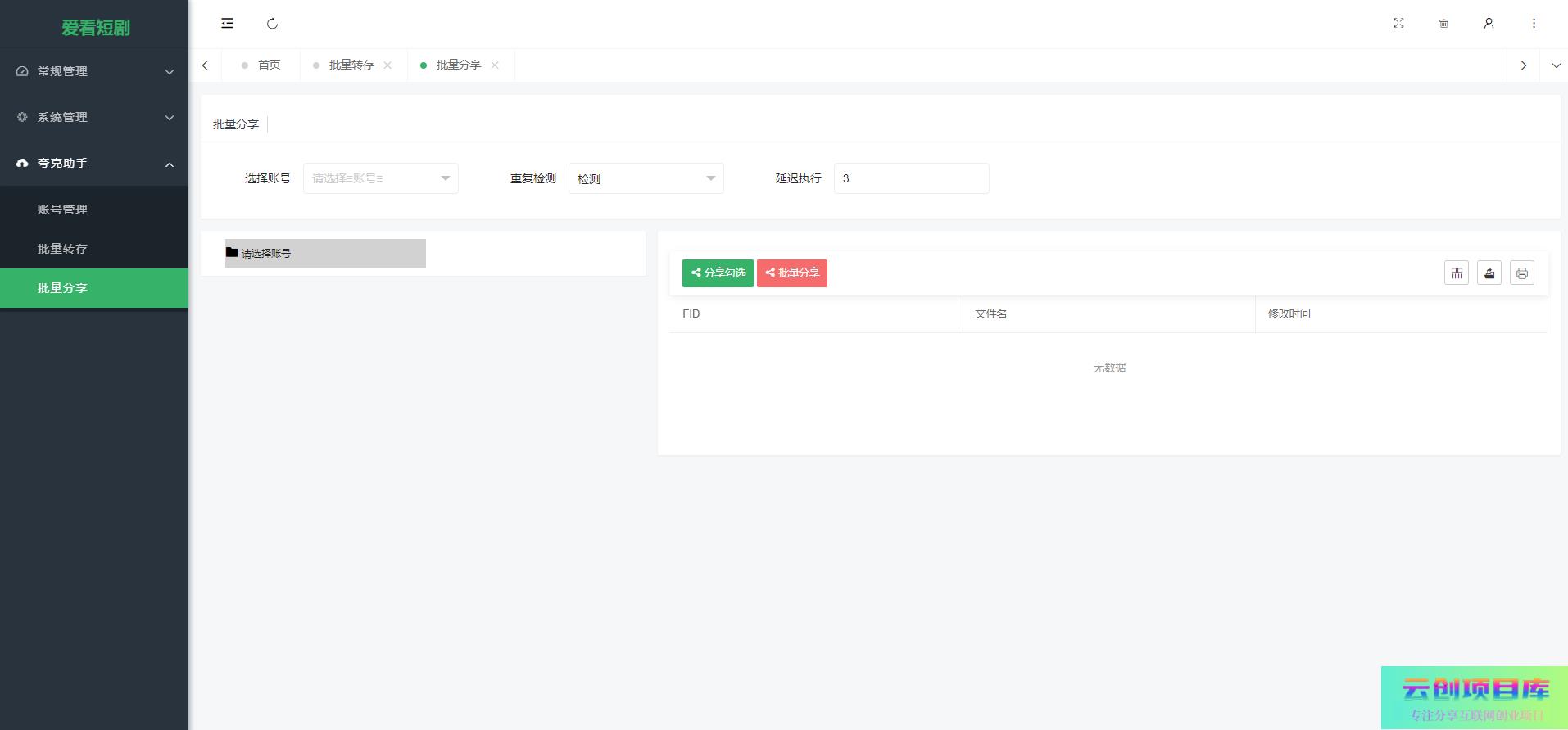 后台包含一套可用的夸克自动转存、自动分享、自动抓取功能。