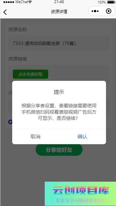 小程序上,添加视频广告ID,可观看广告后获取链接。