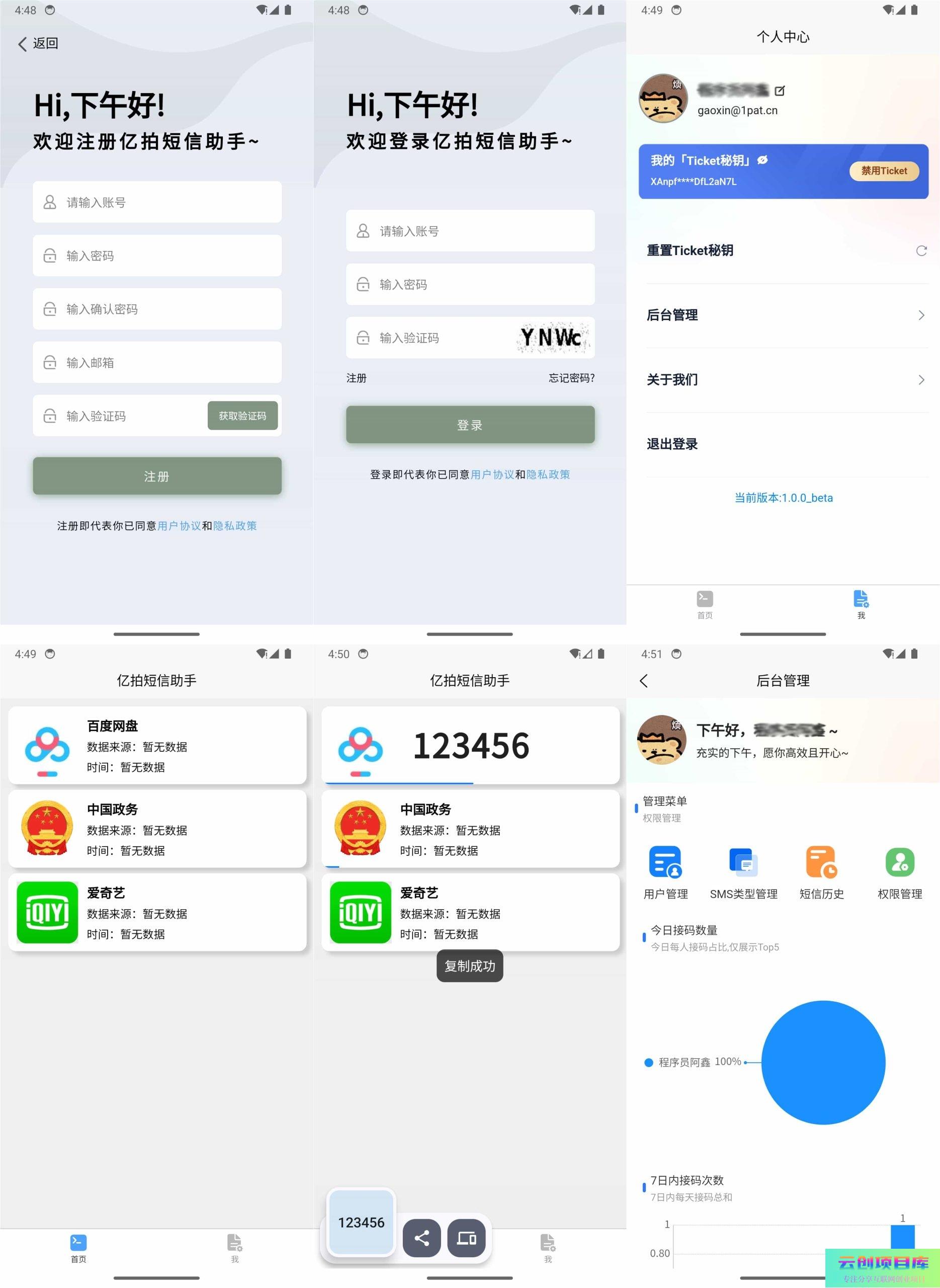 开启/关闭/重置/查看/复制 ticket秘钥功能,保证用户分享短信安全