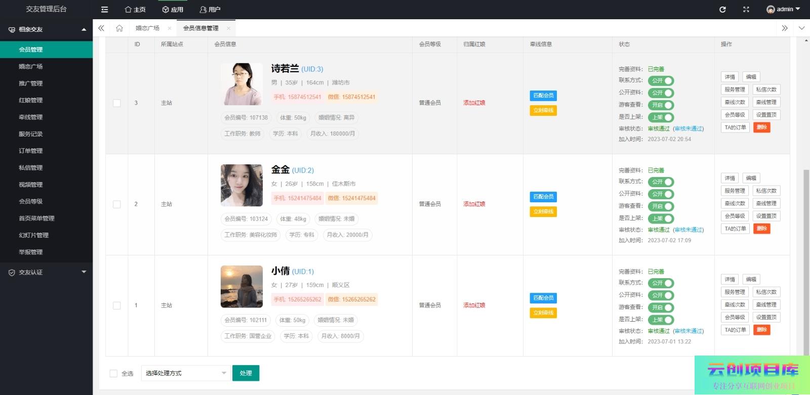 约会交友系统源码 神级约会系统 支持婚恋相亲、媒婆返利、红娘系统、商城系统等云创智库4月5日 23:29更新关注1227 约会交友系统源码 支持婚恋相亲、媒婆返利、红娘系统、商城系统等。这款交友系统功能太多了,适合婚恋相亲,还有媒婆红年、婚庆等等 支持PC和H5还有小程序,可封装APP,里面带安装教程 约会交友系统源码 神级约会系统 支持婚恋相亲、媒婆返利、红娘系统、商城系统等此内容为免费资源,请登录后查看🪙糖果0 登录查看免费资源© 版权声明 免责声明 ◎本站所发布的全部内容源于互联网(包括源代码、软件、学习资料等)本站提供的一切软件、教程和内容信息仅限用于学习和研究目的;不得将上述内容用于商业或者非法用途,否则一切后果请用户自负。宝藏云创对所提供下载的软件和程序代码不拥有任何权利,其版权归该软件和程序代码的合法拥有者所有,网页信息来自网络收集整理,版权争议与本站无关。如果您喜欢该程序和内容,请支持正版,购买注册,得到更好的正版服务。我们非常重视版权问题,如本站不慎侵犯您的版权请联系我们,我们将及时处理,并撤下相关内容!敬请谅解! 侵删请致信E-mail:2754908705@qq.com ◎云创项目库作为信息共享平台我们无法对信息的真实性及准确性做出判断,风险请各位自行甄别。我们不承担任何财产损失和法律责任,若您不同意该提示,请关闭网页且不要在本站拓展任何合作,否则在使用过程中造成的任何损失由您个人承担。本站发布的所有资源不代表本站赞同其观点和对其完整性、真实性、可用性负责 如遇到加密压缩包,请使用WINRAR解压,如遇到无法解压的请联系管理员! THE END网页/APP# 交友网 收藏
