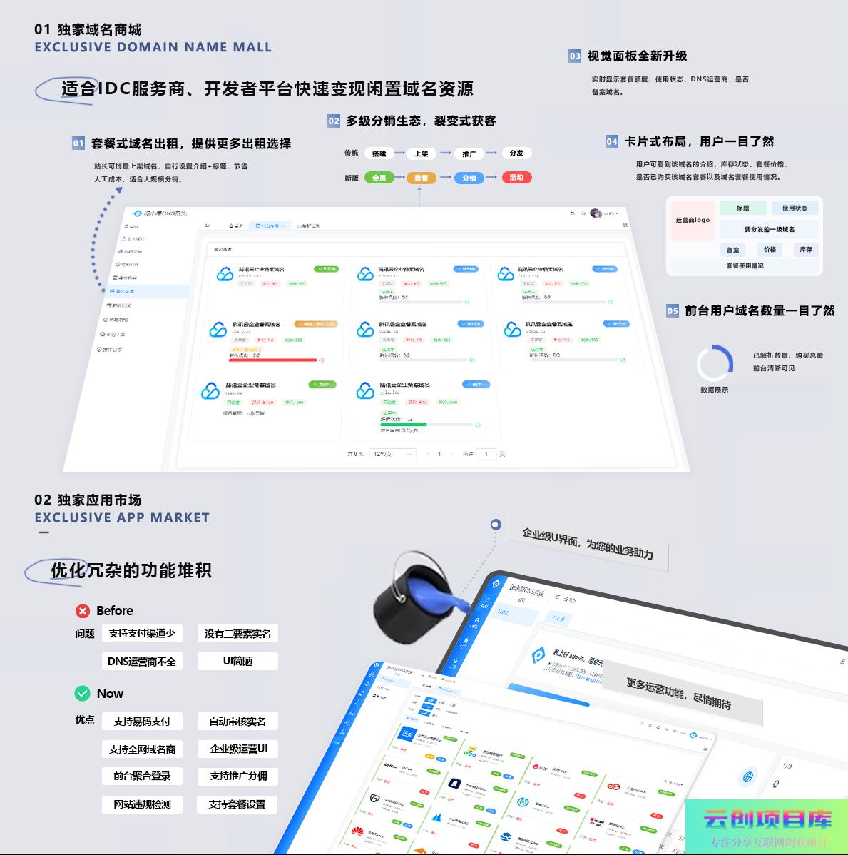 后台管理:全新UI设计,域名批量操作、套餐配置、数据统计一目了然;