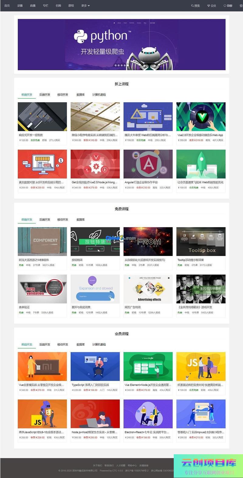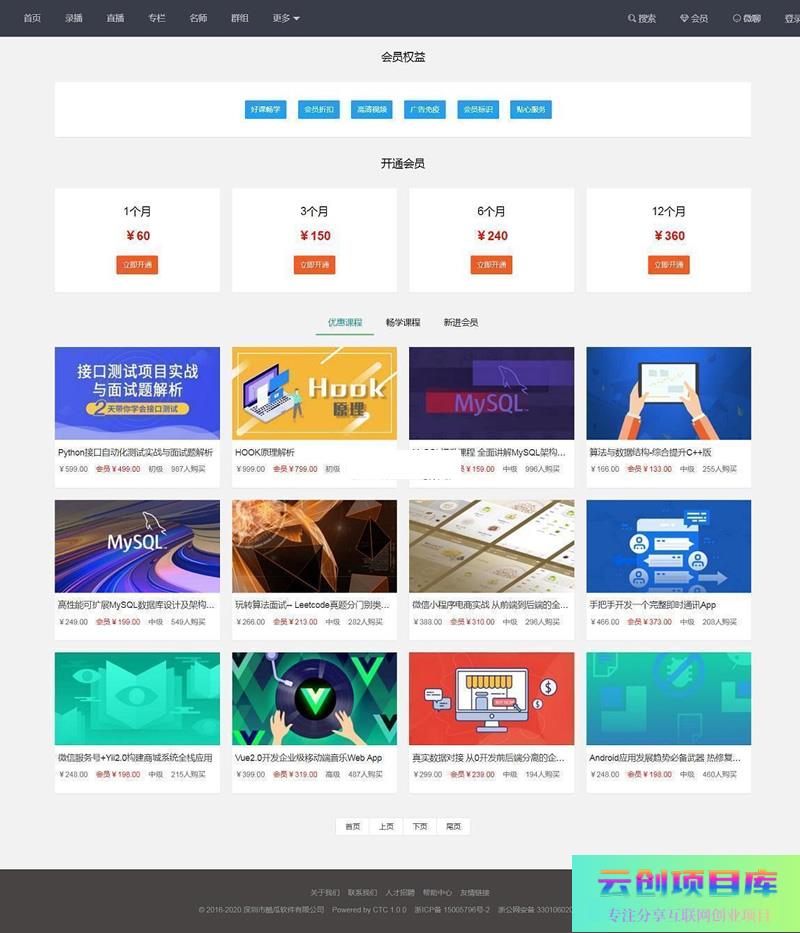 实现了点播、直播、专栏、会员、积分、秒杀、微聊等。