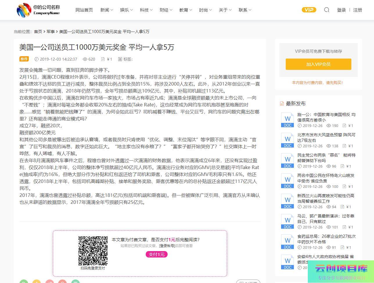 发货100文章付费阅读系统(含小程序)是一个以fahuo100为核心进行开发的知识付费系统网站模板。