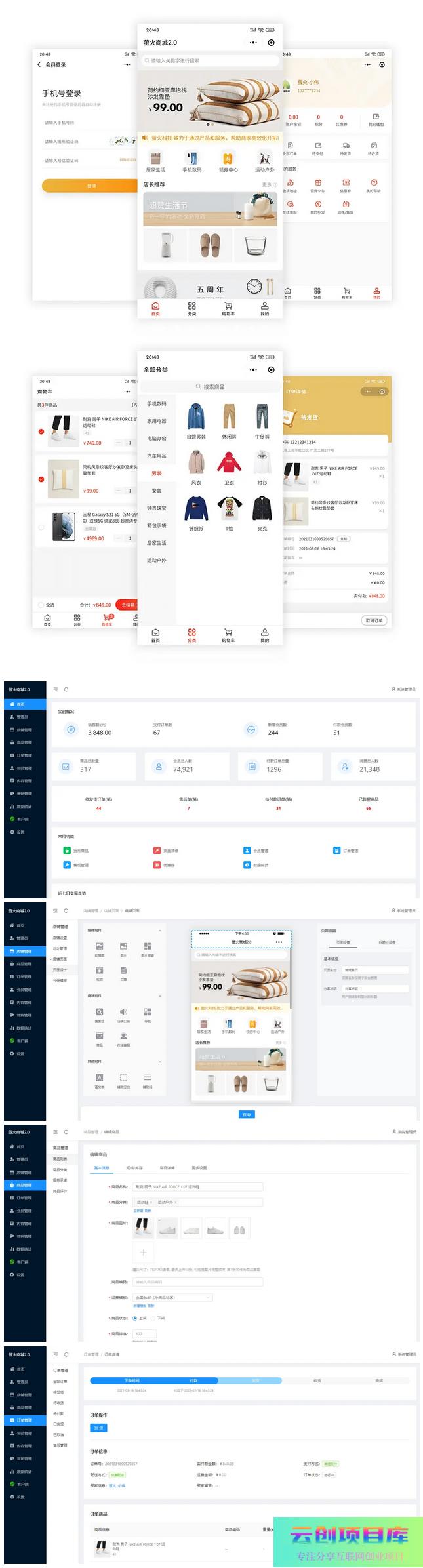 萤火商城V2.0,是2021年全新推出的一款轻量级、高性能、前后端分离的电商系统,支持微信小程序 + H5+ 公众号 + APP,前后端源码完全开源,看见及所得,完美支持二次开发,可学习可商用,让您快速搭建个性化独立商城。