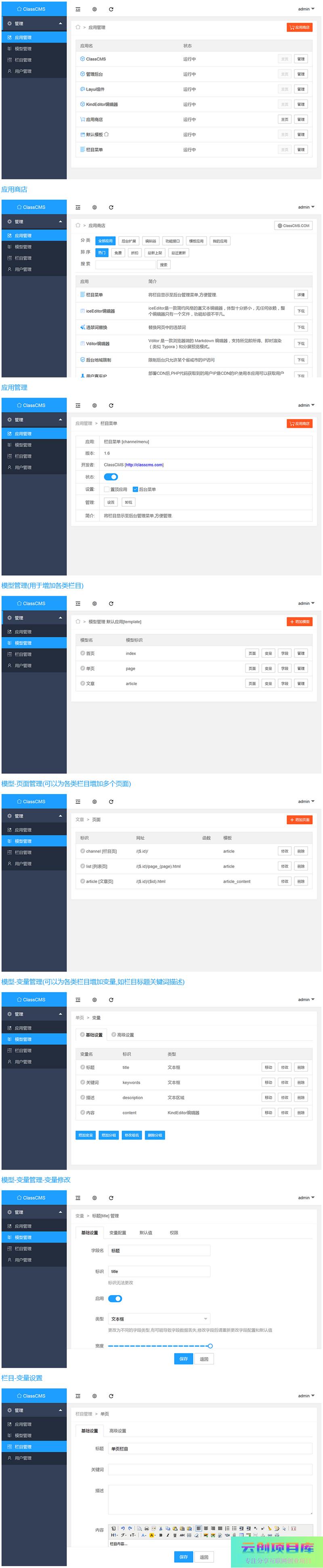 [PHP]ClassCMS内容管理系统 v3.5云创智库4月18日 03:39发布关注1173 ClassCMS内容管理系统是一款简单、灵活、安全、易于拓展的内容管理系统。 ClassCMS特点: 安全稳定,代码精简,安装包不到1M,没有多余的功能。 兼容PHP5.2–PHP8.1。 在APACHE、NGINX、IIS上都能使用。 支持MySQL、SQLite数据库。 拥有几十种输入框,可以快速搭建各种类型的网站。 可自定义栏目变量、文章字段、用户属性。 搭配模型页面,可以自由建立栏目页面。 拥有完善的应用插件机制,一切皆为应用。 免费使用,无需授权。 ID:75135 [PHP]ClassCMS内容管理系统 v3.5此内容为免费资源,请登录后查看🪙糖果0 登录查看免费资源© 版权声明 免责声明 ◎本站所发布的全部内容源于互联网(包括源代码、软件、学习资料等)本站提供的一切软件、教程和内容信息仅限用于学习和研究目的;不得将上述内容用于商业或者非法用途,否则一切后果请用户自负。宝藏云创对所提供下载的软件和程序代码不拥有任何权利,其版权归该软件和程序代码的合法拥有者所有,网页信息来自网络收集整理,版权争议与本站无关。如果您喜欢该程序和内容,请支持正版,购买注册,得到更好的正版服务。我们非常重视版权问题,如本站不慎侵犯您的版权请联系我们,我们将及时处理,并撤下相关内容!敬请谅解! 侵删请致信E-mail:2754908705@qq.com ◎云创项目库作为信息共享平台我们无法对信息的真实性及准确性做出判断,风险请各位自行甄别。我们不承担任何财产损失和法律责任,若您不同意该提示,请关闭网页且不要在本站拓展任何合作,否则在使用过程中造成的任何损失由您个人承担。本站发布的所有资源不代表本站赞同其观点和对其完整性、真实性、可用性负责 如遇到加密压缩包,请使用WINRAR解压,如遇到无法解压的请联系管理员! THE END网页/APP# 整站系统 收藏