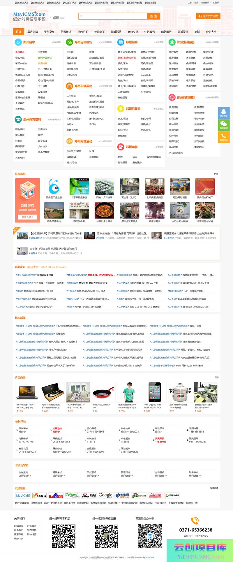 MayiCMS·蚂蚁分类信息系统是一款基于PHP+MYSQL(PC+手机+小程序+APP,跨平台、跨终端)的建站软件,拥有专业且完善的信息审核机制,信息刷新/置顶消费机制,信息分享/发布奖励机制,信息查看/付费授权机制,会员等级自助续费机制,为在各种类型操作系统服务器上架设信息发布平台提供完美的解决方案,拥有世界一流的用户体验,卓越的访问速度和负载能力。