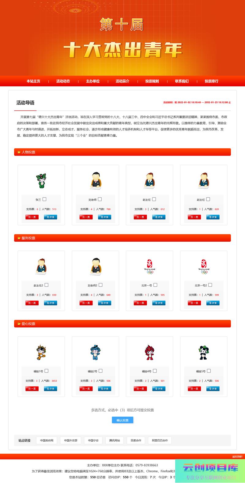 NZCMS-Vote活动投票评选网站管理系统一套面向单位或企业在举行活动评选投票设计的系统,可设定单项投票,多项选中投票,一个IP只投一次或一天只投一次功能效果。防止了多投,作弊的机率。