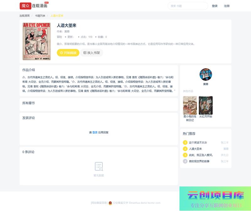 魔众连载漫画系统,快速搭建自己的漫画连载系统。
