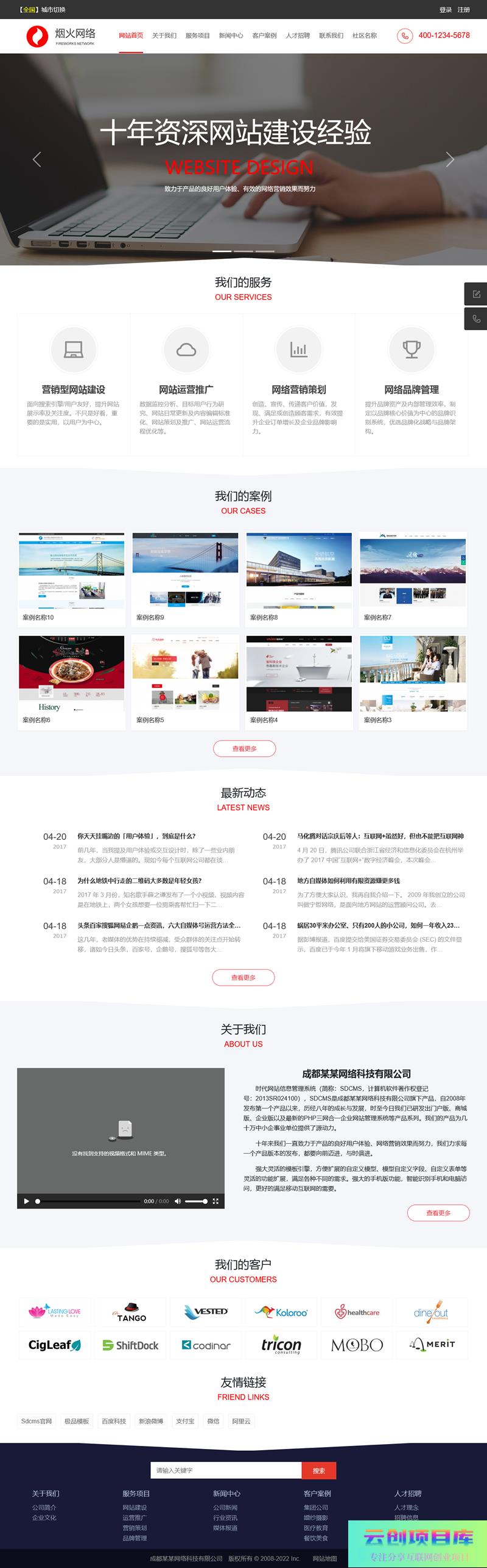 SDCMS红色系网络公司网站是基于SDCMS四合一企业网站管理系统开发的模板,适合企业站,带手机版。