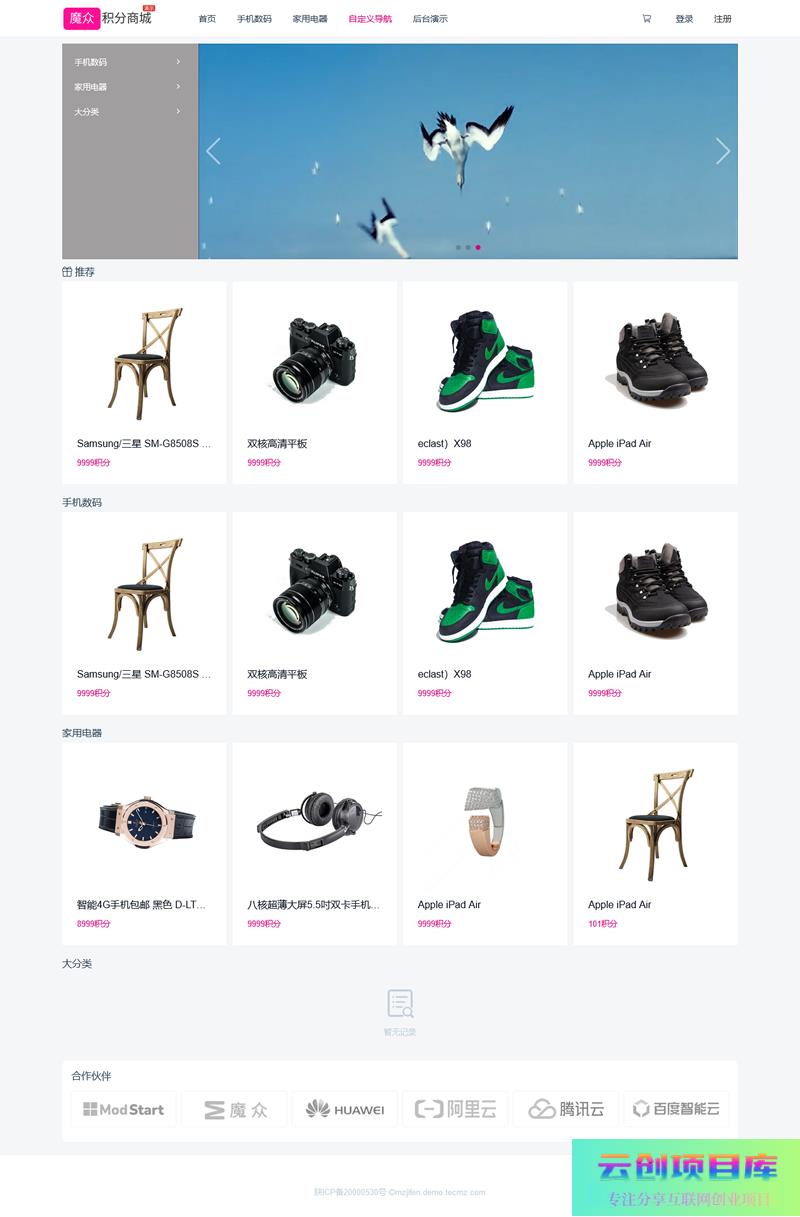 魔众积分商城系统提供积分商城,会员积分系统,积分兑换商城,积分系统,积分运营,营销活动工具,积分游戏。API接口对接会员积分系统,简单配置页面即可上线,助力企业会员运营管理。