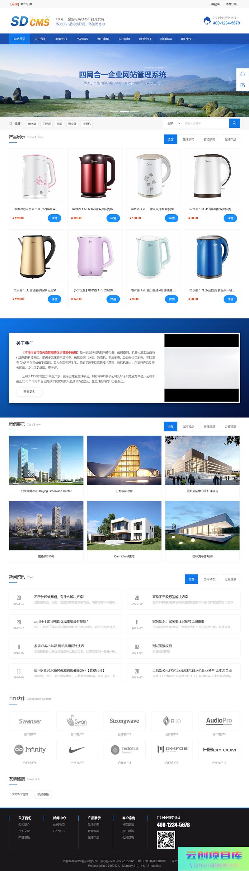 SDCMS四网合一企业网站管理系统是一个以PHP+MySQL/Sqlite进行开发的四网合一网站源码。