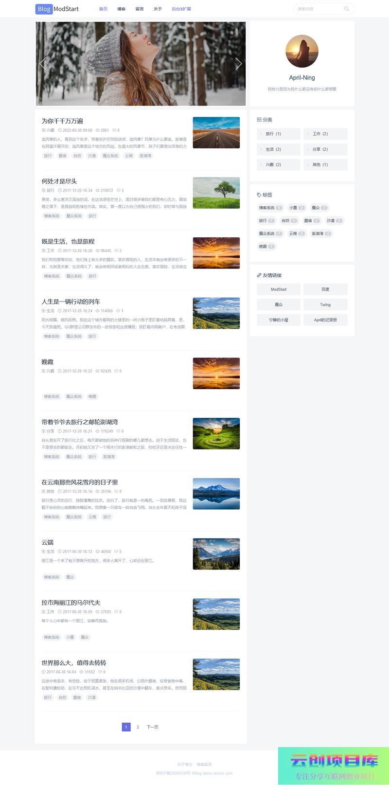 ModStartBlog 是一个基于 Laravel 现代化个人博客系统。模块市场拥有丰富的功能应用,支持后台一键快速安装,让开发者能快的实现业务功能开发。系统完全开源,基于 Apache 2.0 开源协议,免费且不限制商业使用。