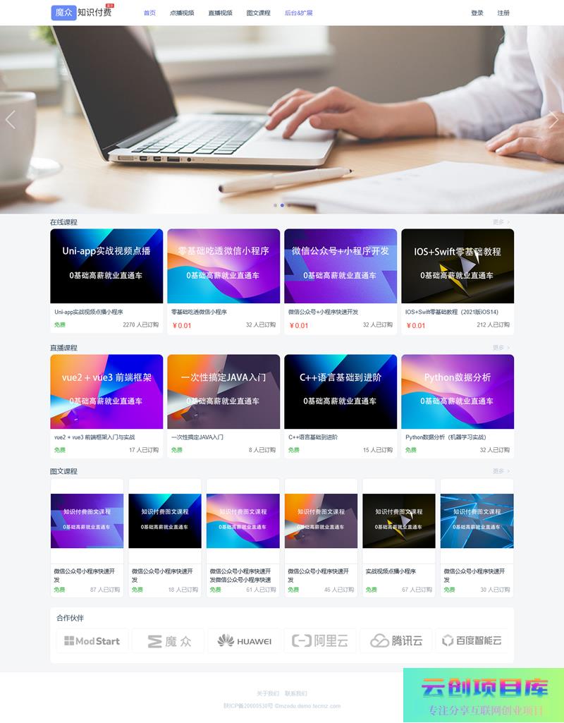 魔众知识付费系统是基于Laravel开发的在线教育点播收费系统,让您一键开展线上教育业务,支持视频点播,电子书,图文收费,考试系统,问答等功能。