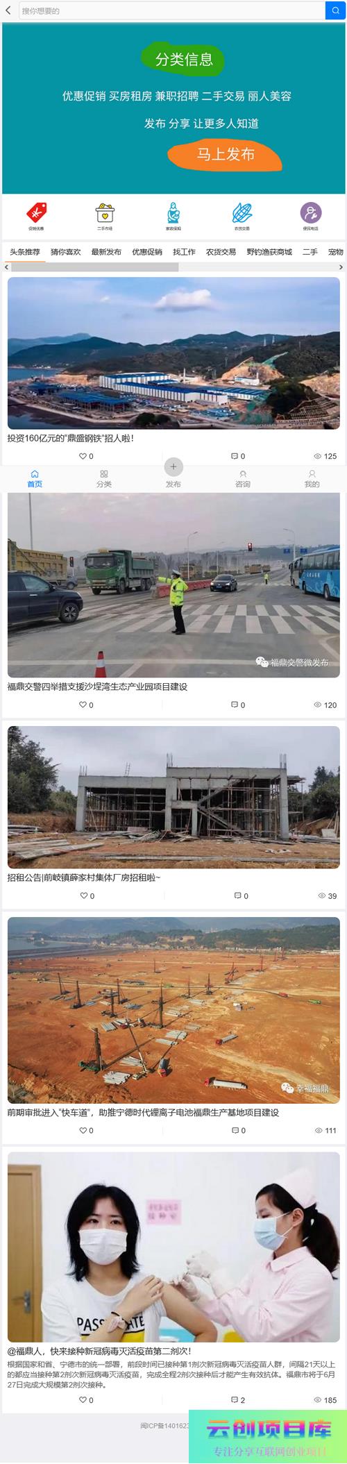 得推分类信息是基于deituiCMS开发的一款分类信息软件,类似于58同城,可用于本地二手、租房、兼职工作等信息的发布。