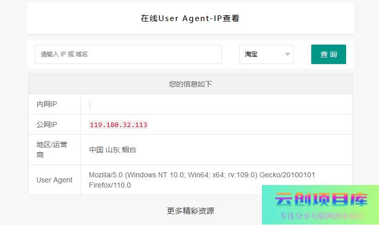 在线IP-UA查询PHP本地接口源码(记录ip的php源码)云创智库4月18日 04:51发布关注2625 在线User Agent-IP查看设备信息在线查看,内附多个接口可自由更换,自行修改AllInfo.php接口文件 内置多个查询接口,可支持查询ip查询。 在线IP-UA查询PHP本地接口源码(记录ip的php源码)此内容为免费资源,请登录后查看🪙糖果0 登录查看免费资源© 版权声明 免责声明 ◎本站所发布的全部内容源于互联网(包括源代码、软件、学习资料等)本站提供的一切软件、教程和内容信息仅限用于学习和研究目的;不得将上述内容用于商业或者非法用途,否则一切后果请用户自负。宝藏云创对所提供下载的软件和程序代码不拥有任何权利,其版权归该软件和程序代码的合法拥有者所有,网页信息来自网络收集整理,版权争议与本站无关。如果您喜欢该程序和内容,请支持正版,购买注册,得到更好的正版服务。我们非常重视版权问题,如本站不慎侵犯您的版权请联系我们,我们将及时处理,并撤下相关内容!敬请谅解! 侵删请致信E-mail:2754908705@qq.com ◎云创项目库作为信息共享平台我们无法对信息的真实性及准确性做出判断,风险请各位自行甄别。我们不承担任何财产损失和法律责任,若您不同意该提示,请关闭网页且不要在本站拓展任何合作,否则在使用过程中造成的任何损失由您个人承担。本站发布的所有资源不代表本站赞同其观点和对其完整性、真实性、可用性负责 如遇到加密压缩包,请使用WINRAR解压,如遇到无法解压的请联系管理员! THE END网页/APP# 搜索/查询 收藏