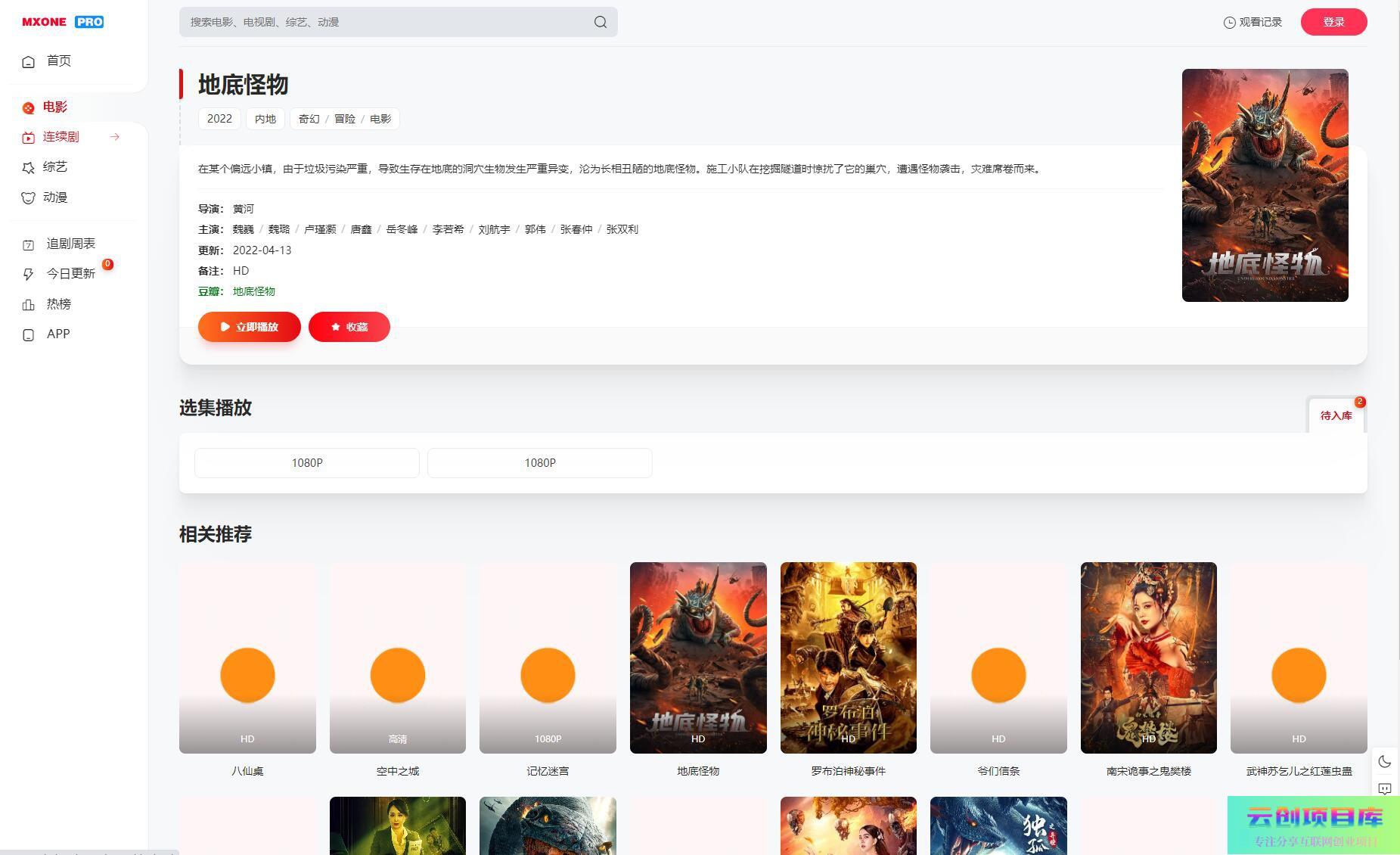 MXPro模板主题(又名:mxonepro)是一款基于苹果cms程序的一款全新的简洁好看UI的影视站模板类似于西瓜视频,不过同对比MxoneV10魔改模板来说功能没有那么多,也没有那么大气,但是比较且可视化功能较多简洁且有周更记录样式等多功能后台设置,类似预mxone魔改版的预告片功能,用来做影视站模板也是极好的,但之前的作者好像不再进行更新就卖给了首涂模板需要授权才能使用,但是首涂拿到之后基本上是不会再次更新了,目前名称是:首途第二十九套模板。