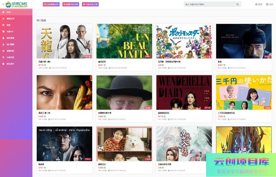 【新增矢量图标版】高仿某app影视苹果CMSv10粉色大气影视模板云创智库4月18日 04:54发布关注1828 高仿某app影视苹果CMSv10粉色大气影视模板。 这套粉色大气视频站模板的效果基础上新增矢量图图标,更清晰加载速度更快,越放大越清晰! 【新增矢量图标版】高仿某app影视苹果CMSv10粉色大气影视模板此内容为免费资源,请登录后查看🪙糖果0 登录查看免费资源© 版权声明 免责声明 ◎本站所发布的全部内容源于互联网(包括源代码、软件、学习资料等)本站提供的一切软件、教程和内容信息仅限用于学习和研究目的;不得将上述内容用于商业或者非法用途,否则一切后果请用户自负。宝藏云创对所提供下载的软件和程序代码不拥有任何权利,其版权归该软件和程序代码的合法拥有者所有,网页信息来自网络收集整理,版权争议与本站无关。如果您喜欢该程序和内容,请支持正版,购买注册,得到更好的正版服务。我们非常重视版权问题,如本站不慎侵犯您的版权请联系我们,我们将及时处理,并撤下相关内容!敬请谅解! 侵删请致信E-mail:2754908705@qq.com ◎云创项目库作为信息共享平台我们无法对信息的真实性及准确性做出判断,风险请各位自行甄别。我们不承担任何财产损失和法律责任,若您不同意该提示,请关闭网页且不要在本站拓展任何合作,否则在使用过程中造成的任何损失由您个人承担。本站发布的所有资源不代表本站赞同其观点和对其完整性、真实性、可用性负责 如遇到加密压缩包,请使用WINRAR解压,如遇到无法解压的请联系管理员! THE END网页/APP# 影音娱乐# 视频/影视# 苹果CMS模板 收藏