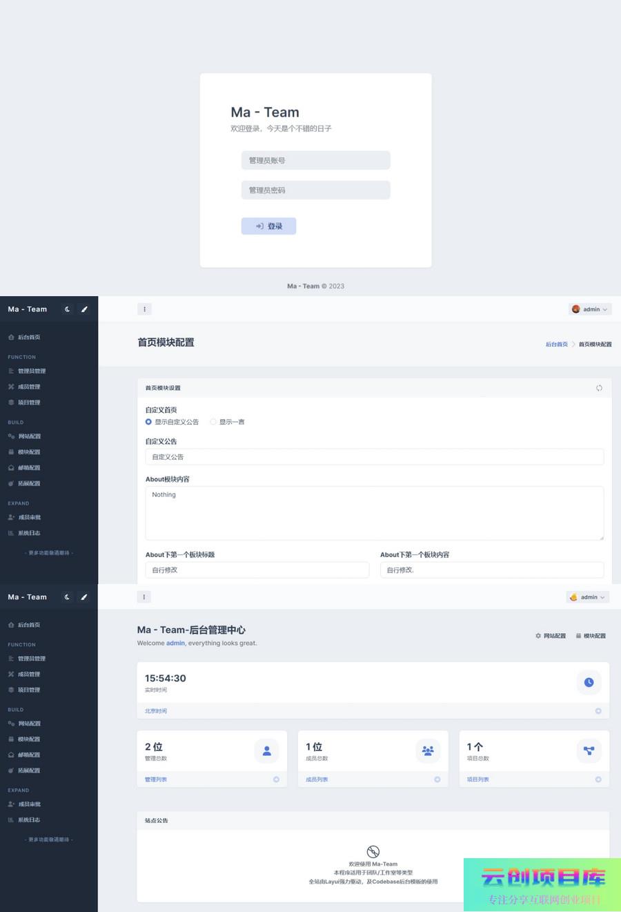 开心版Ma-Team团队管理源码Ver1.0.2源码下载,重写后台所有页面 (因为有人说我二改陌易的系统 昨天看的我想笑 陌易不也改的南逸吗 而且陌易的有授权 一个授权20多 我问过他开源版本卖多少钱他和我说300多 网络上的那套COCO团队系统 就是陌易和COCO一起弄的 第一个帖子有兄弟说 COCO的那套用着用着就弹授权了