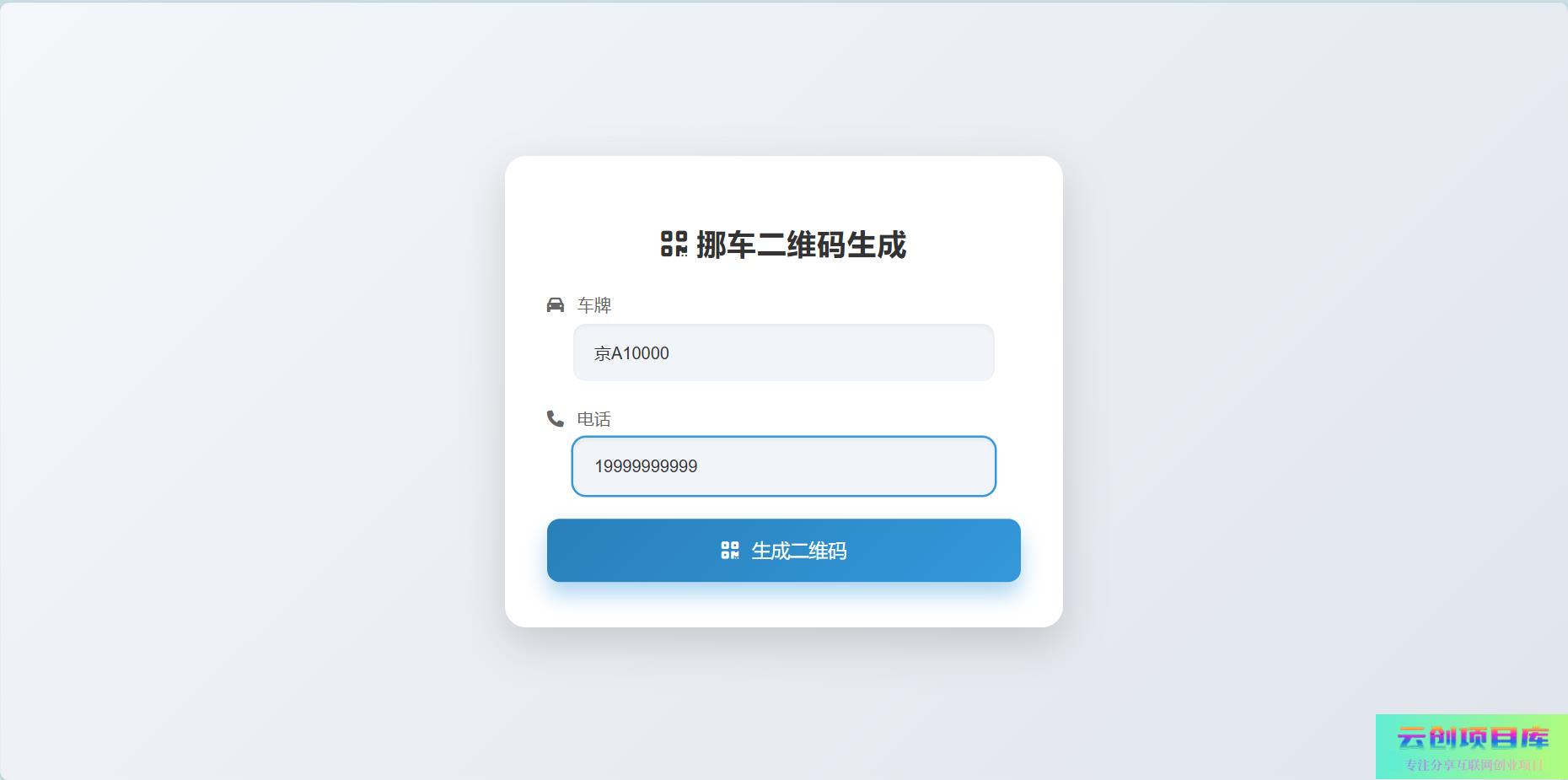 用户可以输入车牌号码和手机号码,作为生成挪车二维码的必要信息。