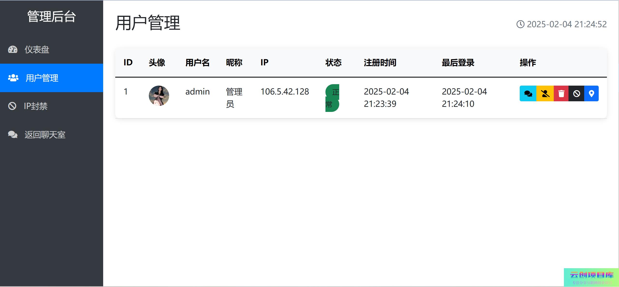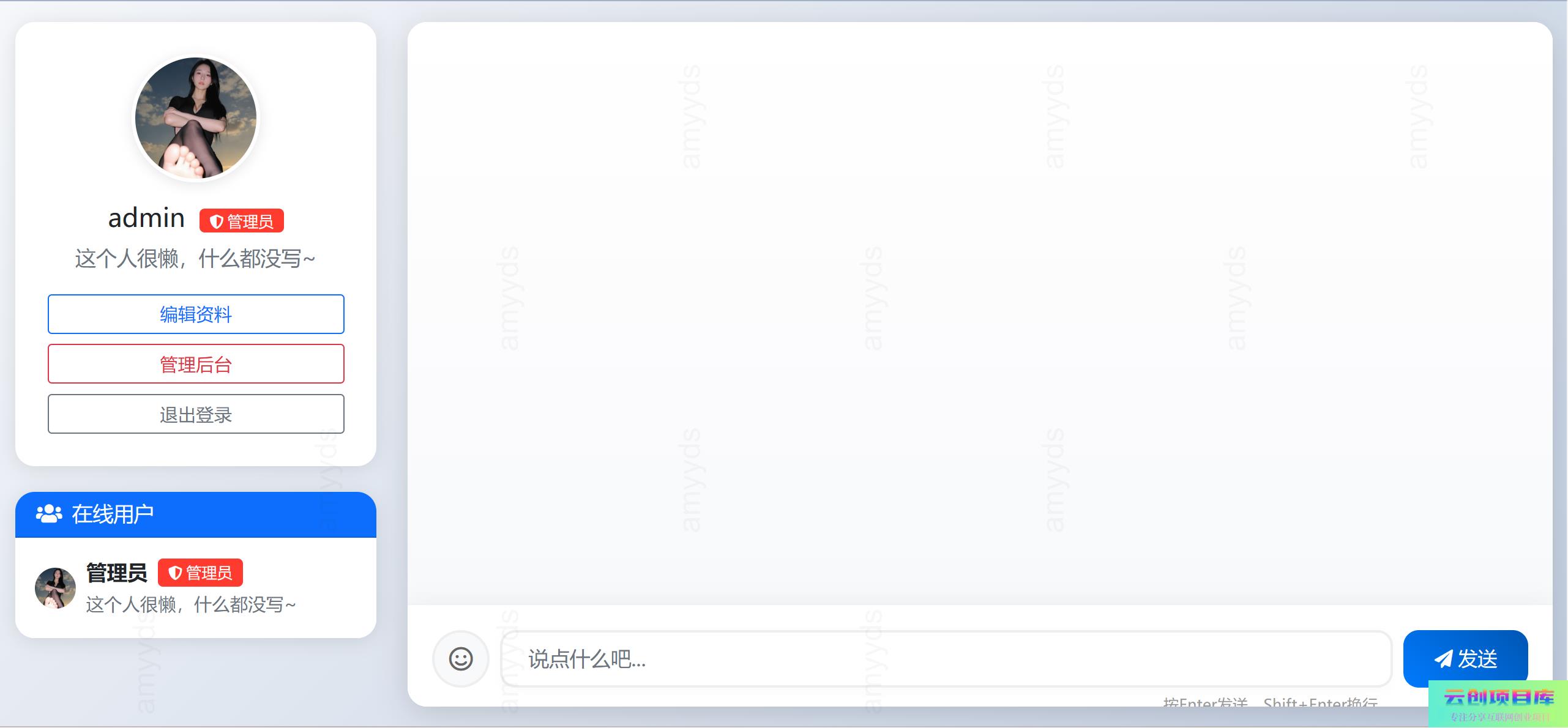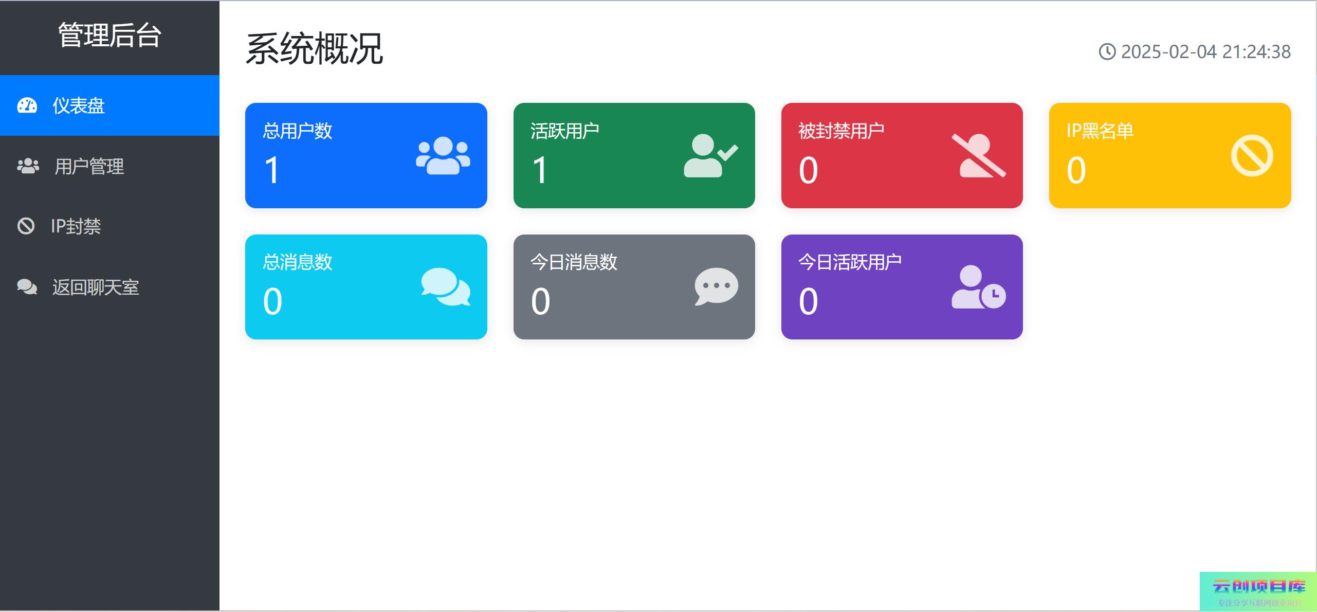 PHP在线聊天系统云创智库4月18日 05:01发布关注1345 支持多人在线同时聊天 注册记录ip,封禁 ip 功能 使用方法: 新建数据库,数据库名必须为 chat-room 懒得开电脑具体我也忘了,安装会提醒的 访问 :域名/install.php 输入数据库信息和管理员信息 安装完成之后直接进入管理后台 前台 域名/chat.php 可以设置一下默认文件,这样用户打开方便,否则会出现 404 PHP在线聊天系统此内容为免费资源,请登录后查看🪙糖果0 登录查看免费资源© 版权声明 免责声明 ◎本站所发布的全部内容源于互联网(包括源代码、软件、学习资料等)本站提供的一切软件、教程和内容信息仅限用于学习和研究目的;不得将上述内容用于商业或者非法用途,否则一切后果请用户自负。宝藏云创对所提供下载的软件和程序代码不拥有任何权利,其版权归该软件和程序代码的合法拥有者所有,网页信息来自网络收集整理,版权争议与本站无关。如果您喜欢该程序和内容,请支持正版,购买注册,得到更好的正版服务。我们非常重视版权问题,如本站不慎侵犯您的版权请联系我们,我们将及时处理,并撤下相关内容!敬请谅解! 侵删请致信E-mail:2754908705@qq.com ◎云创项目库作为信息共享平台我们无法对信息的真实性及准确性做出判断,风险请各位自行甄别。我们不承担任何财产损失和法律责任,若您不同意该提示,请关闭网页且不要在本站拓展任何合作,否则在使用过程中造成的任何损失由您个人承担。本站发布的所有资源不代表本站赞同其观点和对其完整性、真实性、可用性负责 如遇到加密压缩包,请使用WINRAR解压,如遇到无法解压的请联系管理员! THE END网页/APP# 聊天室类 收藏