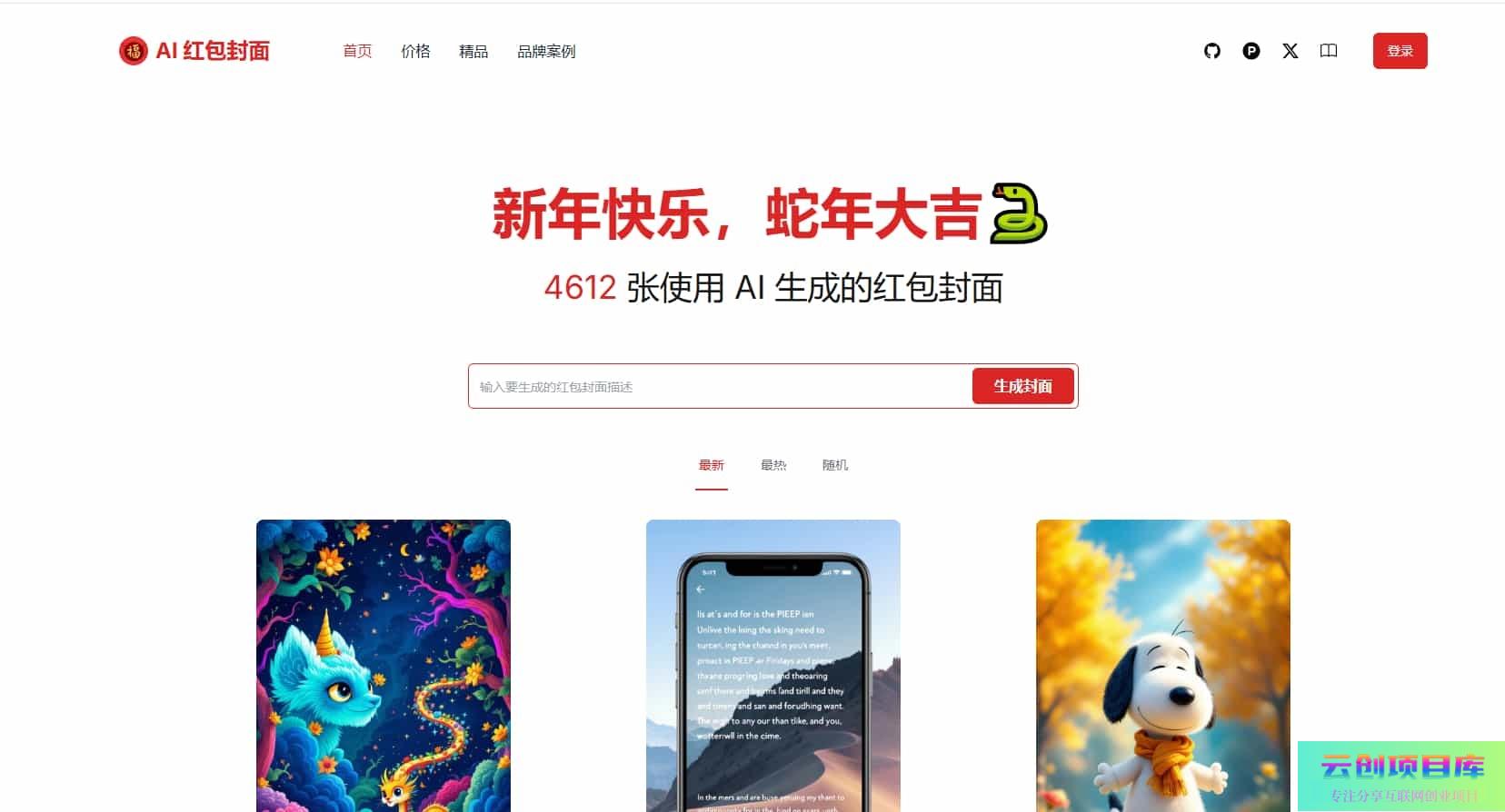 AI一键生成微信红包封面系统源码云创智库4月18日 05:04发布关注2873 使用 AI 技术生成精美的微信红包封面。 AI一键生成微信红包封面系统源码此内容为免费资源,请登录后查看🪙糖果0 登录查看免费资源© 版权声明 免责声明 ◎本站所发布的全部内容源于互联网(包括源代码、软件、学习资料等)本站提供的一切软件、教程和内容信息仅限用于学习和研究目的;不得将上述内容用于商业或者非法用途,否则一切后果请用户自负。宝藏云创对所提供下载的软件和程序代码不拥有任何权利,其版权归该软件和程序代码的合法拥有者所有,网页信息来自网络收集整理,版权争议与本站无关。如果您喜欢该程序和内容,请支持正版,购买注册,得到更好的正版服务。我们非常重视版权问题,如本站不慎侵犯您的版权请联系我们,我们将及时处理,并撤下相关内容!敬请谅解! 侵删请致信E-mail:2754908705@qq.com ◎云创项目库作为信息共享平台我们无法对信息的真实性及准确性做出判断,风险请各位自行甄别。我们不承担任何财产损失和法律责任,若您不同意该提示,请关闭网页且不要在本站拓展任何合作,否则在使用过程中造成的任何损失由您个人承担。本站发布的所有资源不代表本站赞同其观点和对其完整性、真实性、可用性负责 如遇到加密压缩包,请使用WINRAR解压,如遇到无法解压的请联系管理员! THE END网页/APP# 图片类 收藏